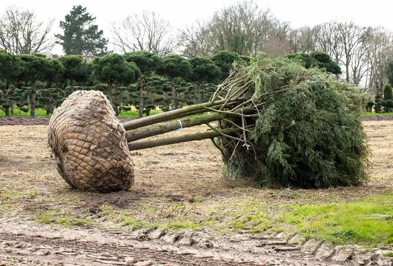 Nadelgehölze sollten idealerweise direkt nach dem Kauf eingepflanzt werden. Lässt sich eine mehrtägige Lagerzeit nicht vermeiden, ist es wichtig, die Pflanzen in den Schatten zu stellen, damit sie vor der prallen Sonne geschützt sind. Der Erdballen muss unbedingt feucht gehalten werden und darf auf keinen Fall richtig austrocknen. Bei Containerpflanzen reicht ein einfaches Feuchthalten nicht, sie müssen bis zur Einpflanzung regelmäßig gegossen werden. Sowohl Ballen- als auch Containerpflanzen müssen sich vor dem Einpflanzen in einem mit Wasser gefüllten Topf vollsaugen dürfen. Sie sollten mindestens so lange im Wasser bleiben dürfen, bis keine Blasen mehr aufsteigen. Das Nadelgehölz wird während des Herausnehmens lediglich am Ballen und nicht am Gehölz gefasst.
