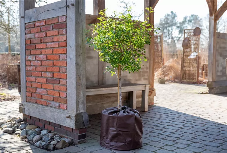 Schutz ist im Winter besonders wichtig, daher sollte man beim Garten winterfest machen vor allem darauf wert legen. Denn es gibt Pflanzen, die brauchen ein bisschen Unterstützung, um gut durch die kalte Jahreszeit zu kommen und damit ihnen Schnee und Eis nichts ausmacht. Dazu gehört ein guter Winterschutz, der vor allem bei empfindlichen Kübelpflanzen wichtig ist. Hat man kein frostfreies Winterquartier oder sind die Kübel zu groß zum Einlagern, kann man mit ein paar Mitteln für einen guten Schutz sorgen. So eignet sich eine Kokosmatte auf der Erde gut als Schutz vor Frost und Eis, gießen kann man durch die Matte trotzdem noch. Auch ein Stück Jute um den Topf kann für zusätzliche Wärme an den Wurzeln sorgen und wer kann, sollte die Pflanzkübel auf eine Styroporplatte stellen, damit die Kälte vom Boden nicht zu sehr nach oben zieht. An den Blättern kann ein dünner Stoff locker herumgewickelt für Schutz sorgen. Wichtig ist aber, dass an wärmeren Wintertagen gelüftet wird, damit die Pflanzen nicht anfangen zu schwitzen und das Schwitzwasser später gefriert und Frostschäden anrichtet. Im Frühjahr, wenn keine starken Minusgrade mehr zu erwarten sind, kann der Winterschutz dann wieder entfernt werden.