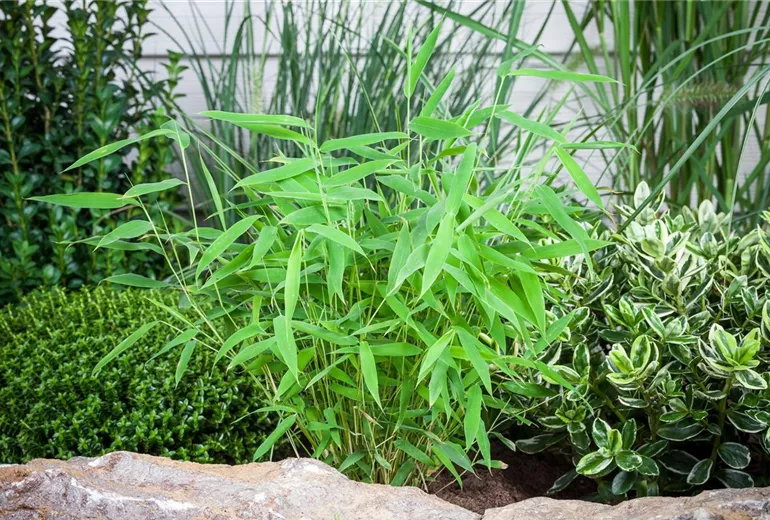 Wer sich den Schirmbambus in den eigenen Garten holen möchte, der muss kein perfektes Konzept eines asiatischen oder japanischen Gartens vorlegen. Denn das Ziergras macht auch in anderen Gestaltungskonzepten eine sehr gute Figur. Ob als blickdichte und immergrüne Hecke oder als stolze Solitärpflanze – es gibt viele gute Gründe, warum man sich den Schirmbambus in den Garten holen sollte. Und auch wer keinen Garten zur Verfügung hat, muss nicht auf das immergrüne Ziergras verzichten. Denn es eignet sich auch hervorragend für die Kultur im Kübel und damit kann man sogar auf dem Balkon für einen grünen und erfrischenden Sichtschutz gegen neugierige Nachbarsblicke sorgen. Wer bei der Pflanzung und Pflege ein paar Dinge beachtet, der wird lange Freude am Ziergras haben, das nicht nur im Sommer, sondern auch im Winter ein hübscher Anblick ist. Mit mehr als 15 verschiedenen Sorten sind die Gestaltungsmöglichkeiten vielfältig und so findet der Schirmbambus Platz in japanischen Gärten, Steingärten, als Heckenpflanze oder auch als Sicht- und Windschutz im Garten, auf der Terrasse oder auf dem Balkon.