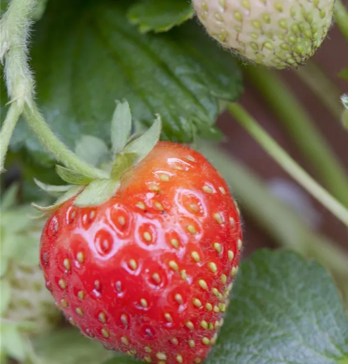 Die Erdbeere 'Senga®-Sengana®' (Fragaria x ananassa) bildet rote, sehr große Beeren. Diese sind fest und süß, aromatisch im Geschmack. Für eine ertragreiche Ernte ab Juni schaffen durchlässiger, humoser, schwachsaurer Boden und ein sonniger Standort optimale Bedingungen. Auch ihre weißen Blüten sind eine schöne Erscheinung.