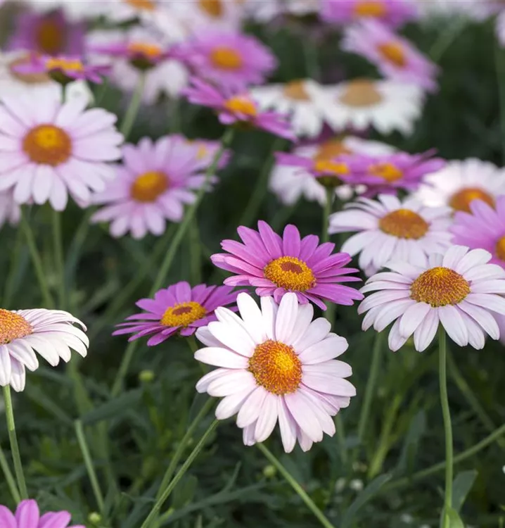 Die Strauchmargerite (Argyranthemum frutescens) ist eine beliebte Pflanze für den Balkon. Die unzähligen Blüten erscheinen, je nach Sorte, in verschiedenen Farben die ganze Saison hindurch. Ein sonniger Standort und ein durchlässiges Substrat werden bevorzugt.