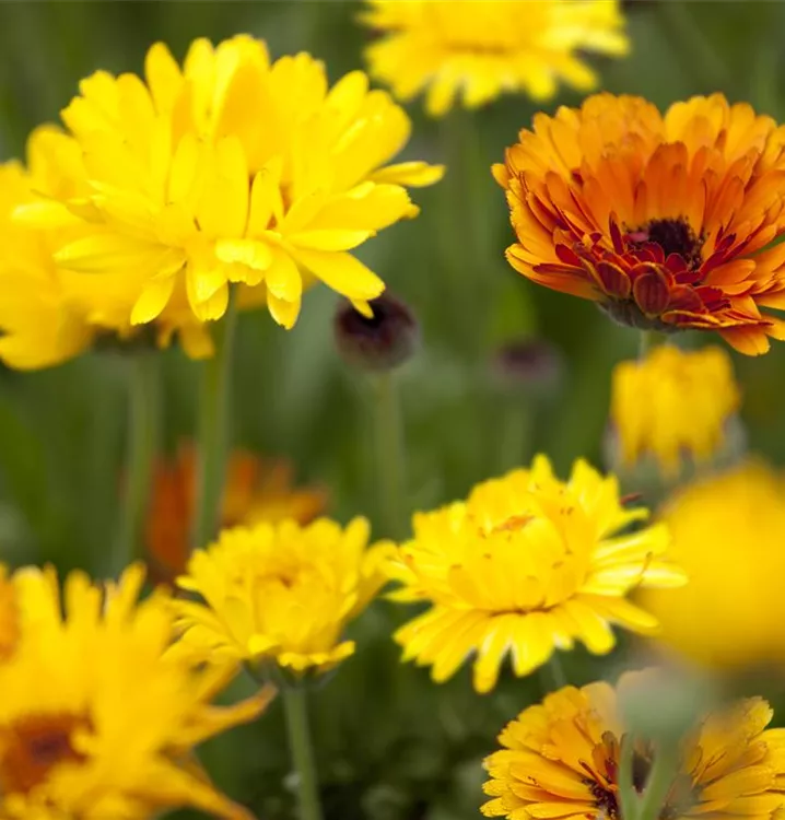 Die Ringelblume (Calendula officinalis) ist eine beliebte Pflanze für den Balkon. Die unzähligen, angenehm duftenden Blüten erscheinen, je nach Sorte, in verschiedenen Farben die ganze Saison hindurch. Ein sonniger Standort und ein durchlässiges Substrat werden bevorzugt.