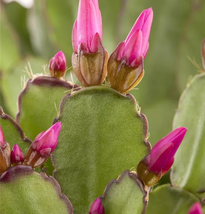 Die immergrünen Blätter des Osterkaktuses sind mittelgrün, eiförmig, dickfleischig, gekerbt.
