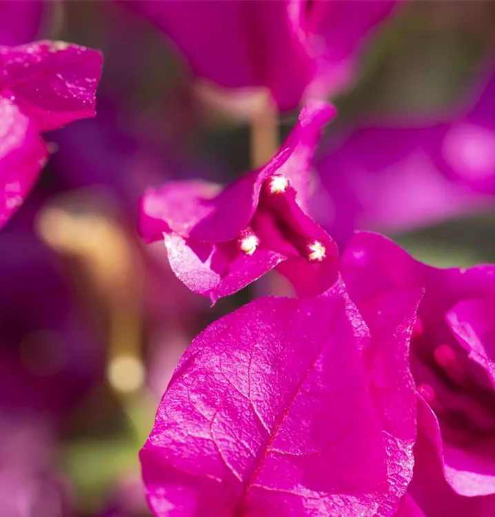 Die Drillingsblume (Bougainvillea) ist eine sehr beliebte Kübelpflanze. Ihre dekorativen Blüten sind sternförmig und erscheinen von Juli bis September. Verwenden Sie bevorzugt die spezielle Kübelpflanzenerde, denn sie verdichtet sich über längere Zeit nicht.